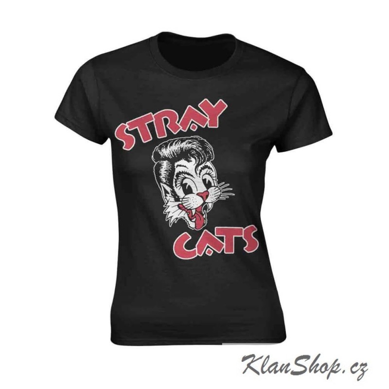 Dámské černé tričko s krátkým rukávem Stray Cats Cat Logo.