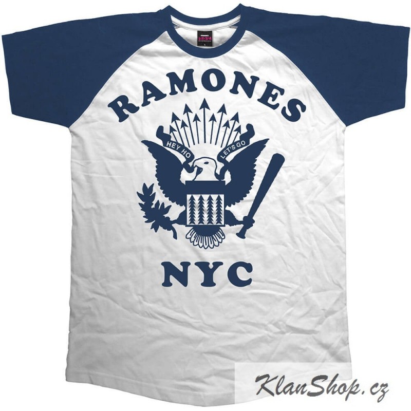 Pánské (unisex) bílé tričko s modrými rukávy Ramones Retro Eagle.