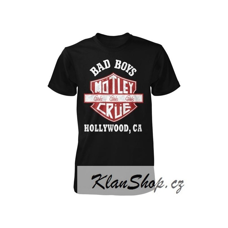 Pánské (unisex) černé tričko s krátkým rukávem Mötley Crüe Bad Boys Shield.