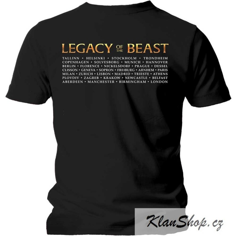 Pánské (unisex) černé tričko s krátkým rukávem Iron Maiden Legacy Of The Beast Europe Tour 2018.