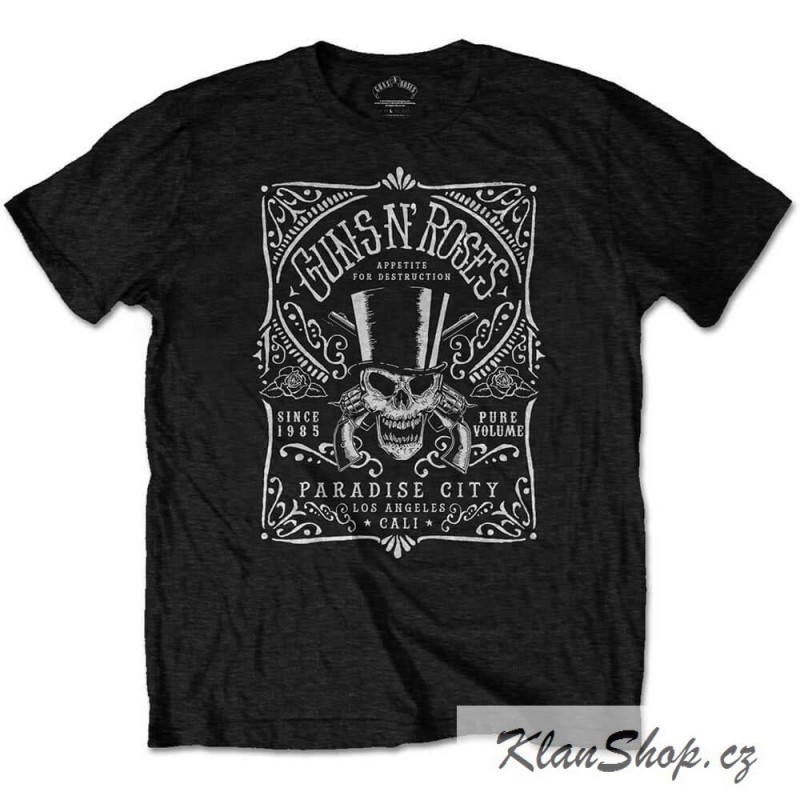 Pánské (unisex) černé tričko s krátkým rukávem Guns N' Roses Bourbon Label.