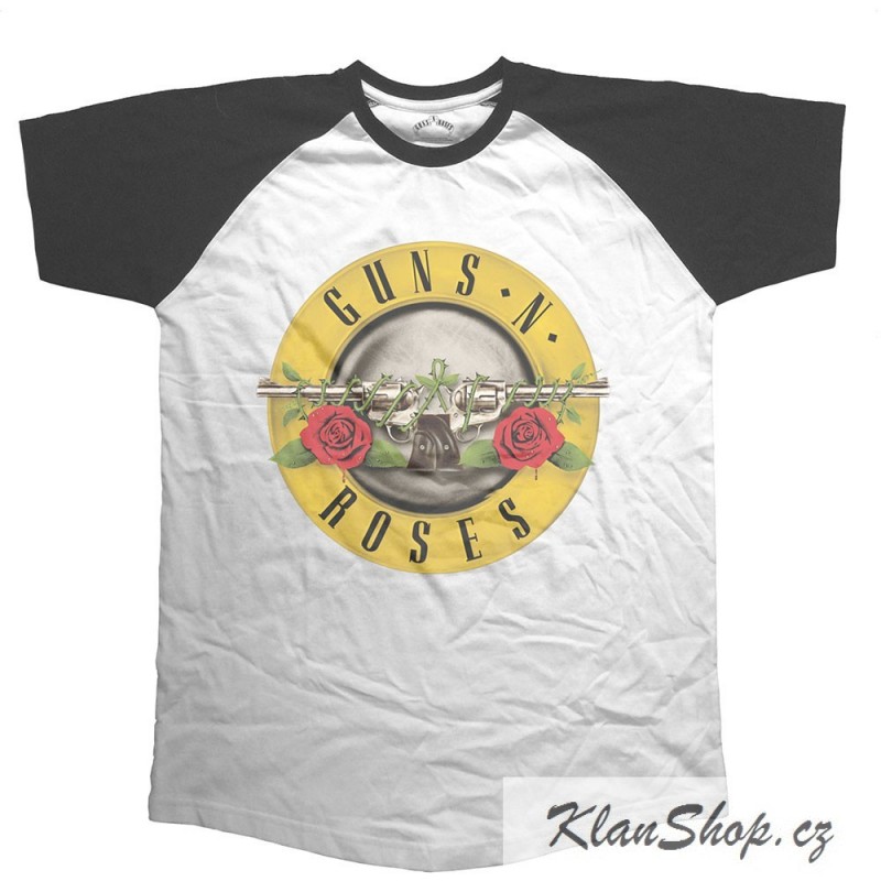 Pánské (unisex) bílé tričko s černými rukávy Guns N' Roses Circle Logo.