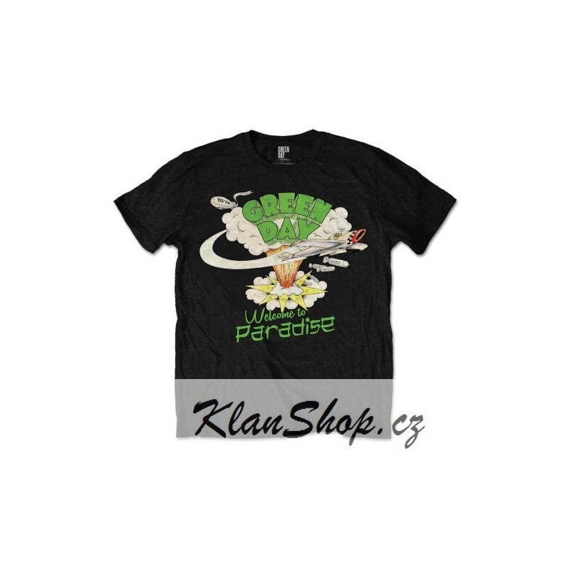 Pánské (unisex) černé tričko s krátkým rukávem Green Day Welcome To Paradise.