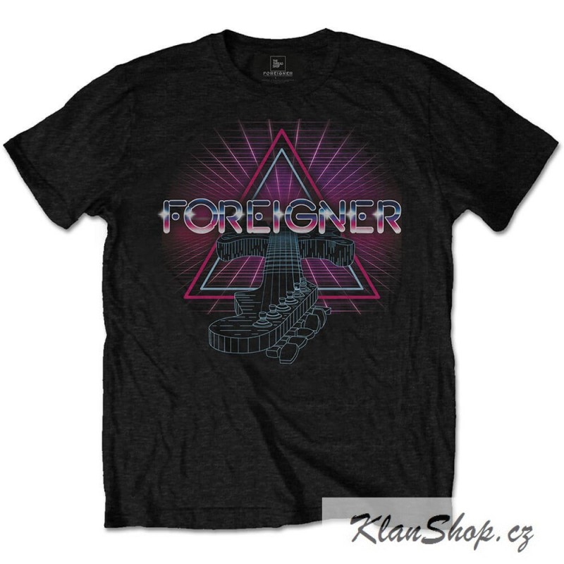 Pánské černé tričko s krátkým rukávem Foreigner Neon Guitar.