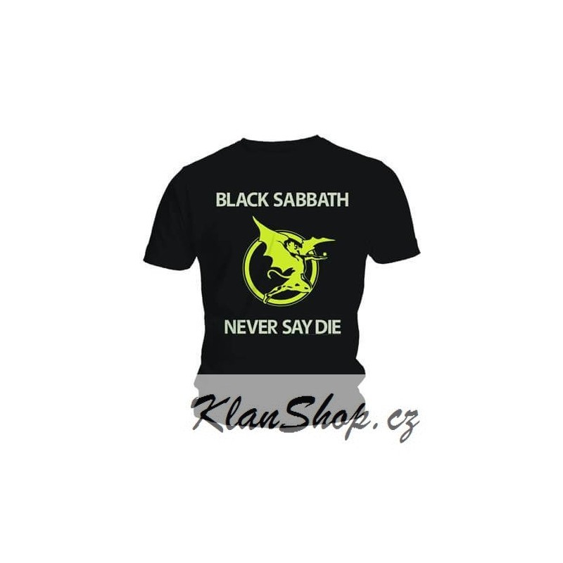 Pánské (unisex) černé tričko s krátkým rukávem Black Sabbath Never Say Die.