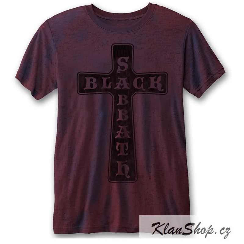 Pánské (unisex) rudé tričko s krátkým rukávem Black Sabbath Vintage Cross.
