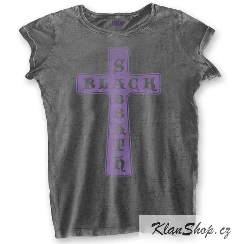 Dámské šedé tričko s krátkým rukávem Black Sabbath Vintage Cross.