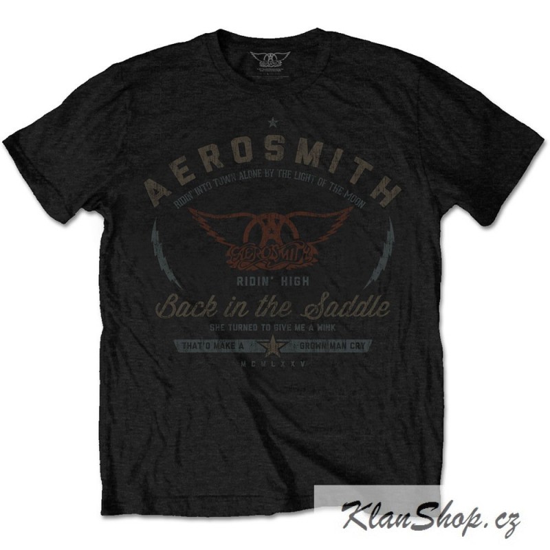 Pánské (unisex) černé tričko s krátkým rukávem Aerosmith Back In The Saddle.