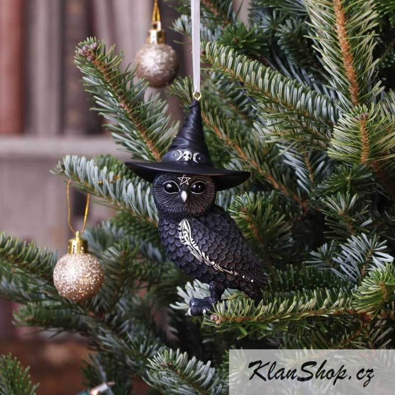 Vánoční ozdobička na stromek - Černá čarodějnická sova.
