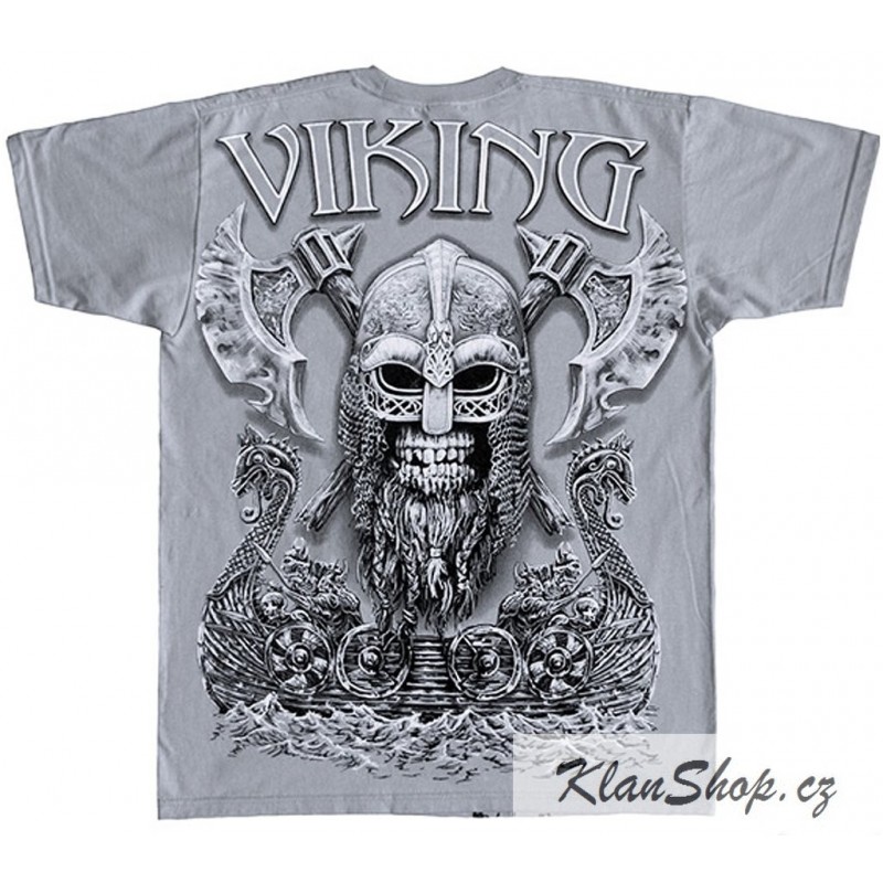 Pánské šedé tričko - celopotisk - Viking - Berserk - viking v helmě.