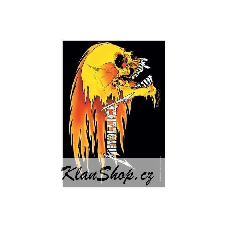 Vlajka na zeď s kapelou Metallica Skull & Flames.