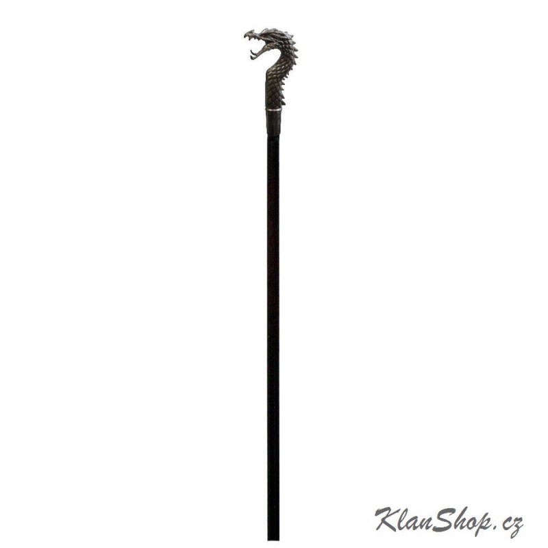 Dlouhá vycházková hůl s dekorací - černý drak.