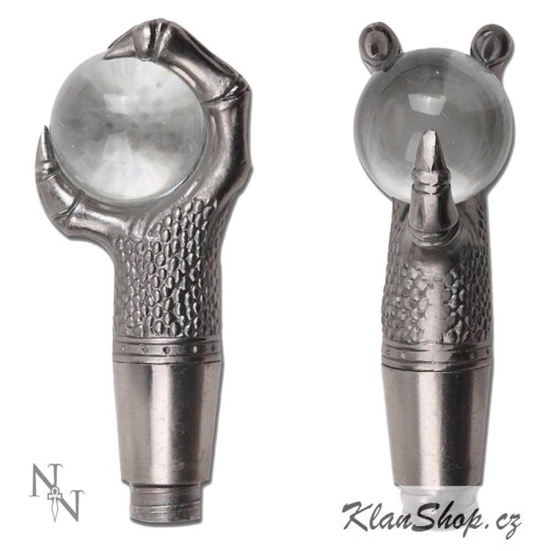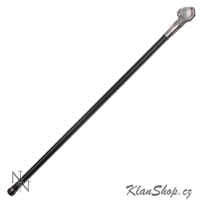 Dlouhá vycházková hůl s dekorací - drápy držící bílou kouli.