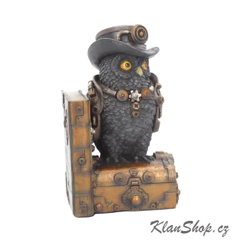 Dekorativní zarážka na knihy - steampunk černá sova.